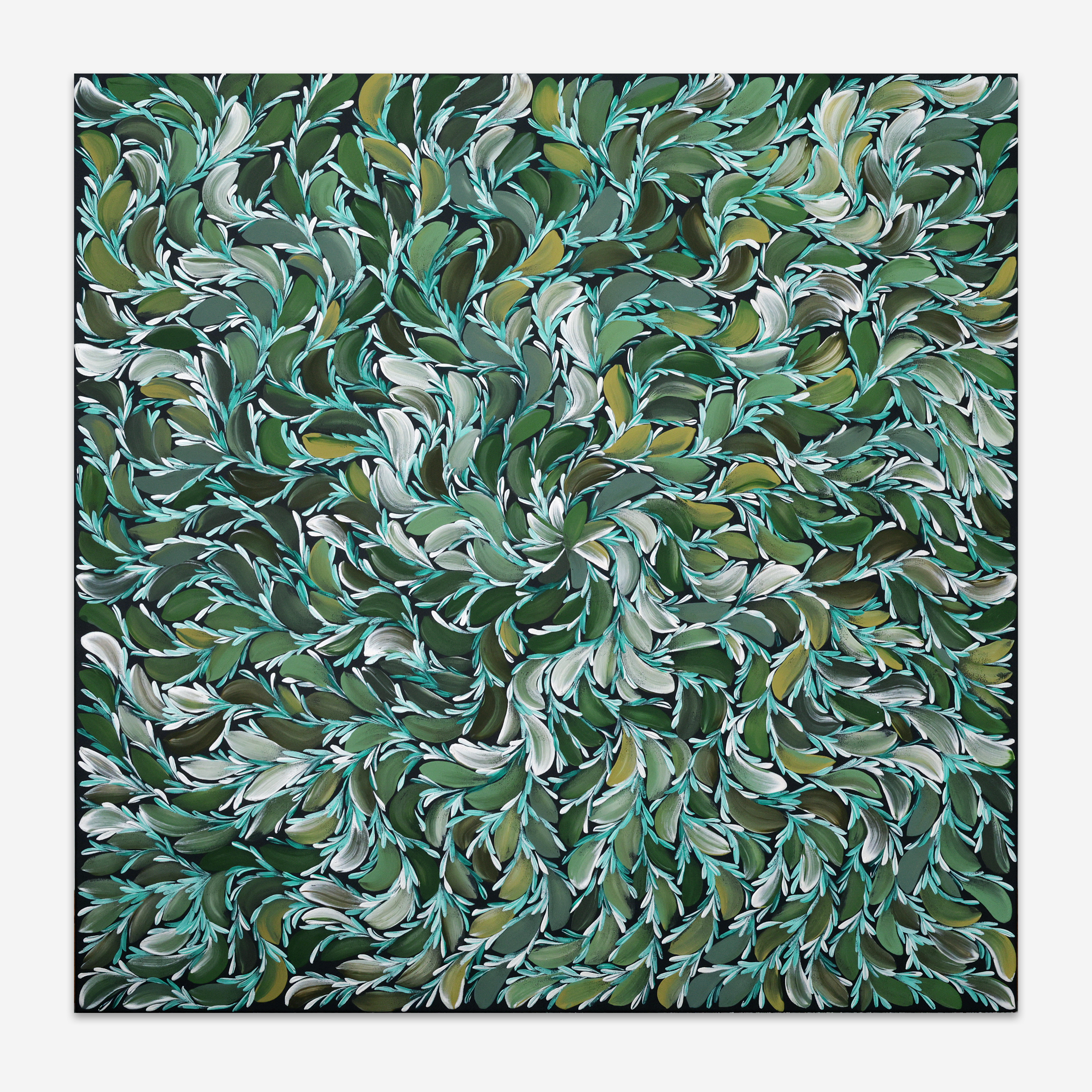 The Story: Stephanie Singh-Highfold is a proud Ngarrindjeri, Kokatha, and Warlpiri woman who calls Adelaide home. This work draws on the traditional knowledge of bush medicine leaves, which have long been used to treat bites, wounds, skin infections, and rashes. The leaves are also infused in hot water to create healing teas. Traditionally gathered by women, the leaves are boiled and mashed with animal fats to produce a medicinal paste that can be stored and used for many months.